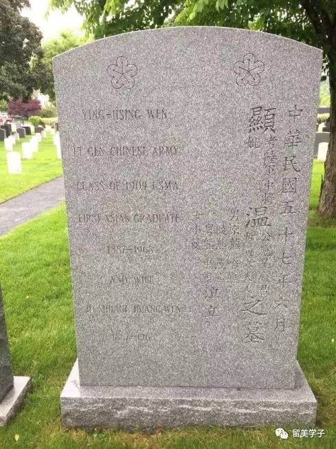 当年的6月5日,温应星追悼会在阿灵顿国家公墓(Arlington Cemetery)举行,由他六位当年西点军校的同班同学为其抬棺。灵柩运至西点军校后,西点的乐队和礼仪队出动引导,温应星终于叶落人生第二“根”,与妻子合葬于西点军校军人公墓。高高的墓碑右以中文篆刻“中华民国五十七年六月,显考陆军中将温公应星、妣温母黄太夫人之墓,男京熊、陵熊、粤熊、哈熊、燕熊、申熊,女小曼泣立”,左侧则以英文标注“温应星,中国陆军中将,西点军校1909年毕业,第一位亚裔毕业生”(Ying-Hsing Wen, Lt Gen Chinese Army, Class of 1909 USMA, First Asian Graduate)。这也是西点军校军人公墓中,唯一一块中英文对照的墓碑。