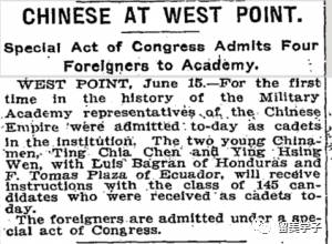 1905年报导温应星和陈廷甲入读西点军校,是该校首度接纳中国学生。(翻摄自)