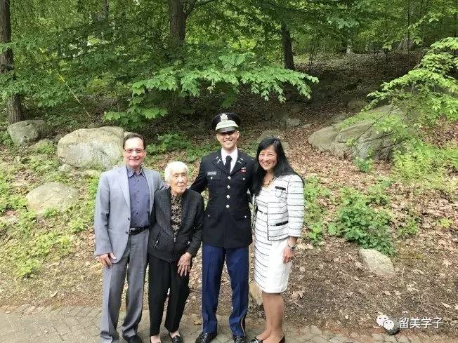 母亲赵子英(右一)、父亲Steve Kozlowski(左一)与外婆温小曼(左二)见证柯立人(右二)成为家族第二位西点毕业生。(董温子华提供)